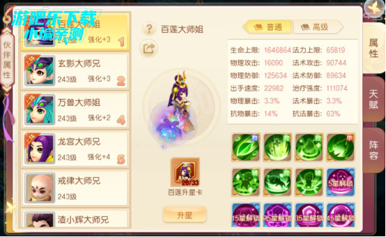伙伴属性:伙伴升星可增加伙伴基本属性,升星卡可在师门闯关获得。