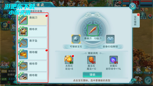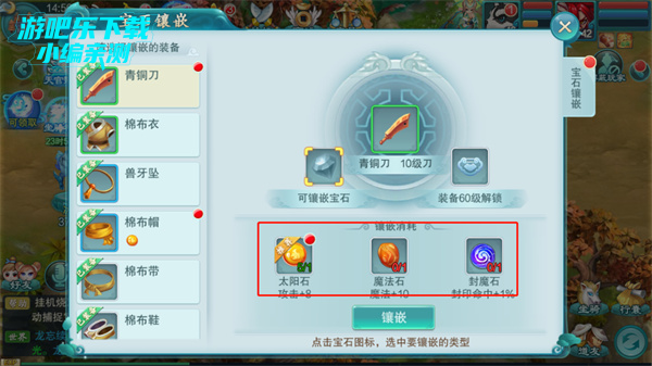 3、再次选择需要镶嵌的宝石,点击下方的镶嵌即可。