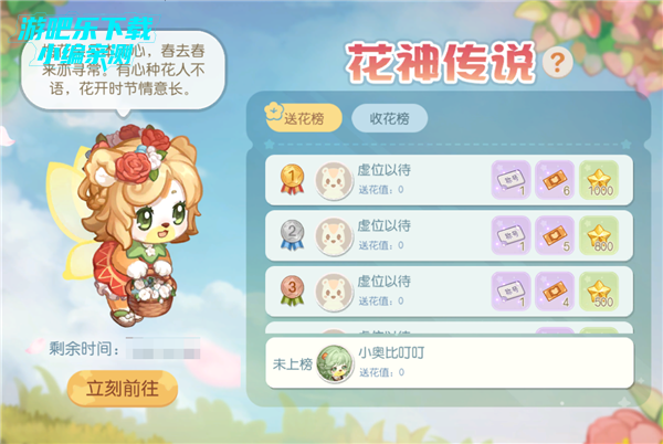 活动介绍:花开时节情意长,沉睡在百花园中的花神已经醒来。前来收集材料,制作花神最爱的花束,将其赠与心仪之人吧。活动期间,送花、收花达到排名条件奖励,即可获得对应的排名奖励物品哦!