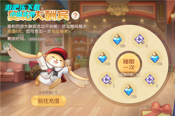 活动介绍:奥柏大酬宾火热开启!活动时间内,每日累计充值6元即可获得1次抽奖机会。连续7天每日累计充值6元,就可以把所有奖励都带回家哦!