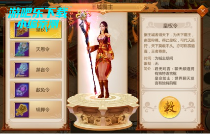 王城城主将获得六项权利:皇权令、天恩令、禁言令、赦免令、缉押令。