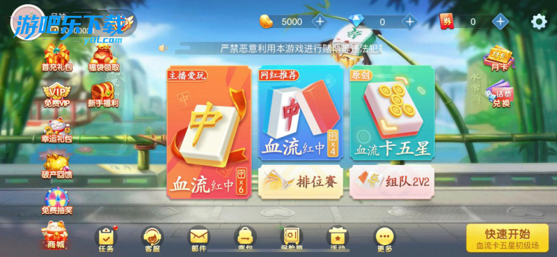新手专属礼(注册就领):5000金豆启动资金+记牌器*3(帮你记对手打过的牌),无需做任务,登录直接到账;