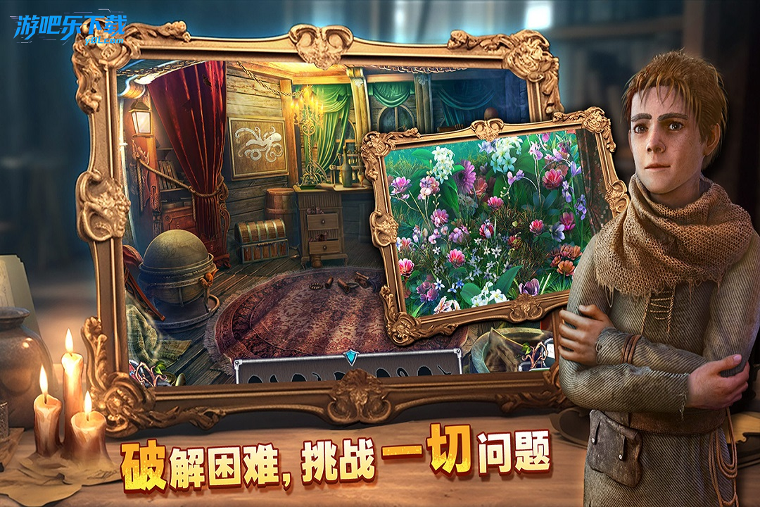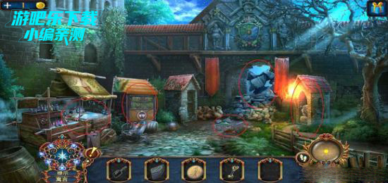 进入房子,右边壁炉捡起火的符号,用铲子铲灰,捡起框饰。左边地上,捡起火柴盒,小人。出门,在水车上用“火”打开柜子,得到