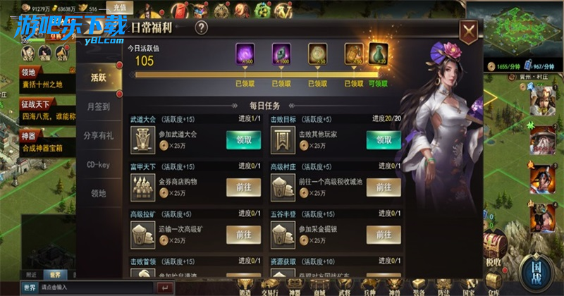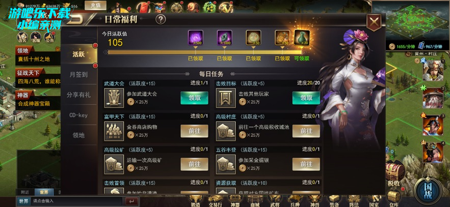 进入日常福利界面,完成任务获取活跃度,领取对应的奖励;