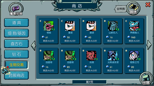 用途:切后输出,过图利器,可用到45-55链,后面替代掉后可考虑合成暗杀兽,普通系优先进阶+1,石头留给毒蜘蛛+2