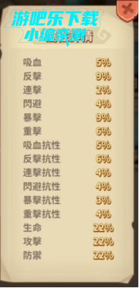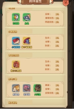 中型动物的属性搭配为:反击、连击、暴击、重击、闪避的抗性增加