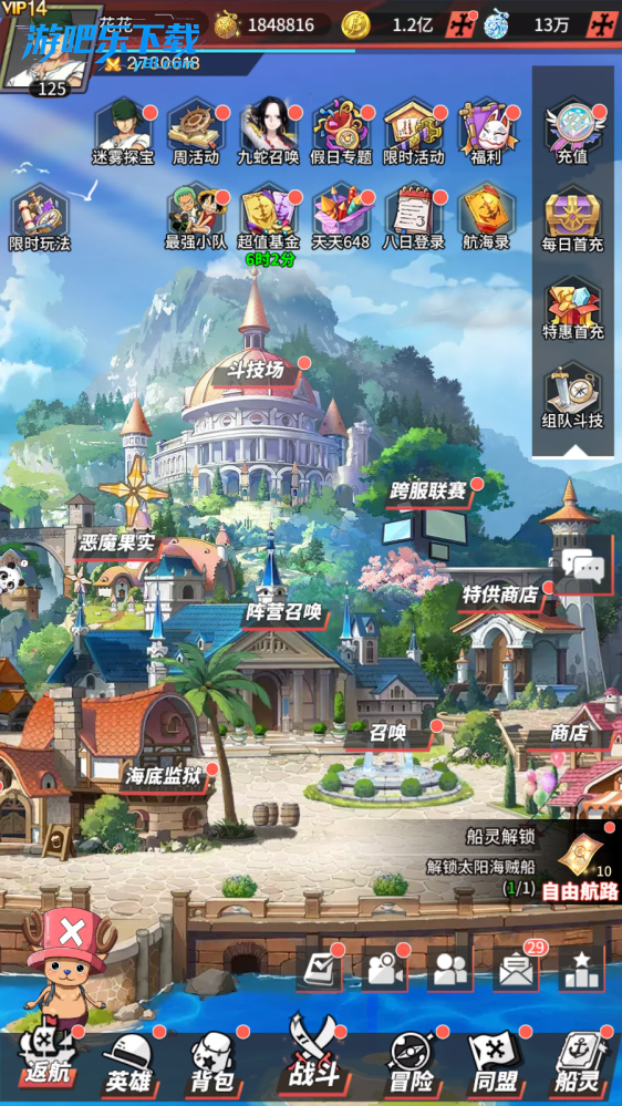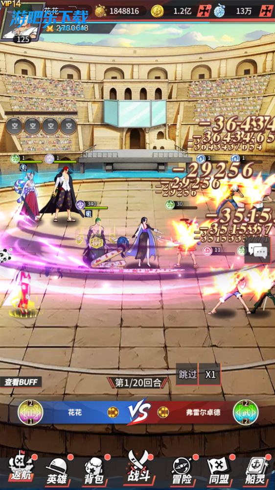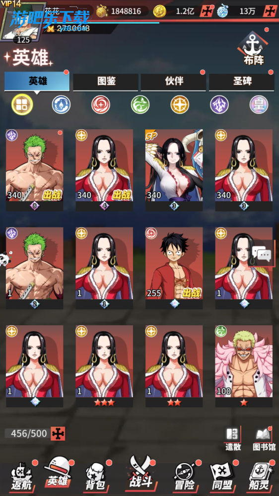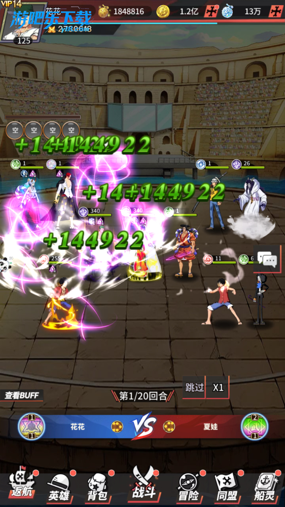 核心战斗支持全自动放置,离线也能积累金币、经验与卡牌碎片,上班族、学生党无需熬夜肝级,上线即可收资源,基于角色属性(力、敏、智)与阵营(海贼、海军、革命军)设计羁绊体系,例如“女帝+山治”激活“魅力组合”增伤30%,“全海贼阵容”触发群体吸血效果,策略性拉满,战斗采用回合制机制,怒气技能手动释放,关键时刻可通过“女帝石化控场+SP山治爆发输出”秒掉敌方核心,新手按推荐阵容上阵,老玩家可开发专属套路。