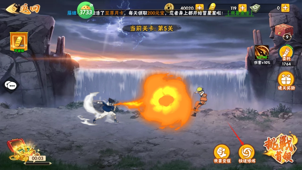 8、也可以点击快速修炼,快速升级,解锁更多功能,玩家自由探索。