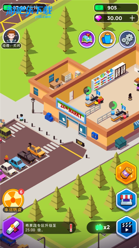 当停车场满了之后一定要记得扩大,不然会降低超市的收益哦!