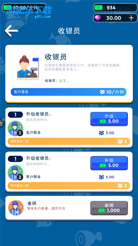 升级完成之后,可以去雇佣一位收银员,这样也可以大大的缩短收银的速度;