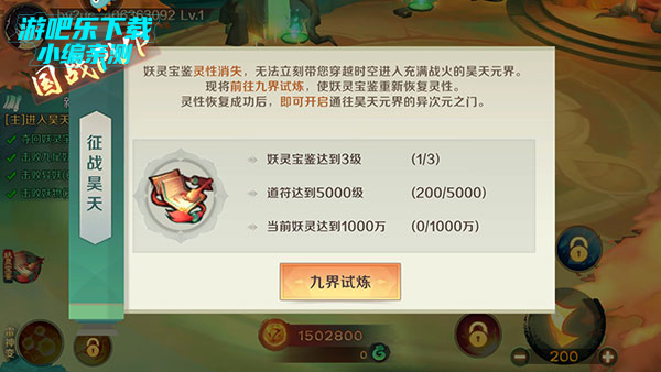 1、在完成新手任务之后,我们就可以前往九界去进行历练。