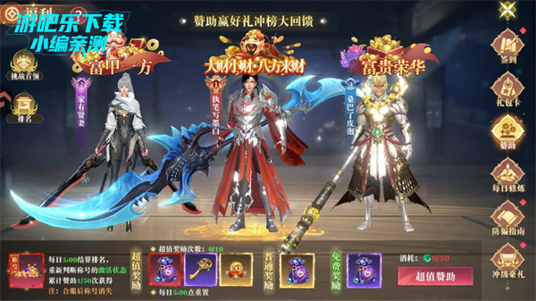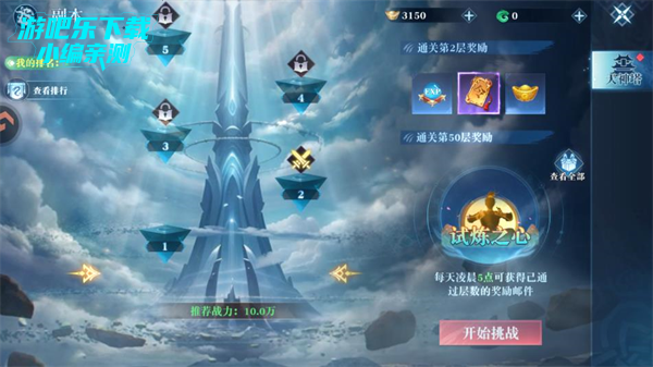 3、天神塔:挑战天神塔,不断攀登获取经验。
