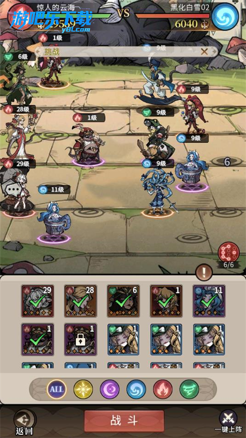 残血追击流的进阶阵容,全部采用神话角色,对平民玩家来说会稍微比较难成型一些。