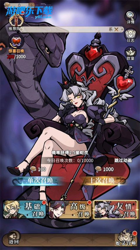 - 幻灵召唤师手游,暗黑童话风格,放置卡牌玩法,蛇灵召唤策略布阵,离线挂机也能玩,新手阵容推荐,还有丰富的兑换码,是一款非常不错的手游!
