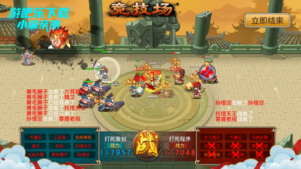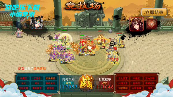 【战况4】由于无敌buff在,对方女儿技能打空后,我方织女迅速一个技能压低对方全部仙将的血线