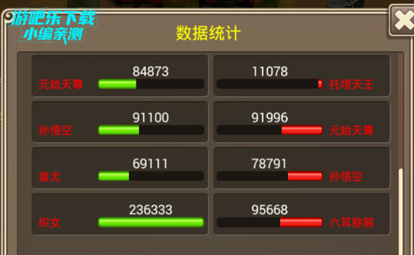 【战况7】从统计数据看,三圣母的强势毋庸置疑,由于无敌buff的存在,对方的输出技能几乎没有打出有效的伤害,整体下来我方的三圣母与织女的伤害非常可观
