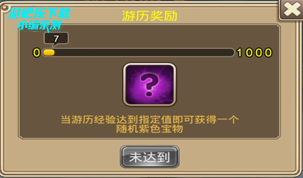 3、玩家累计点数每当达到1000点的时候,即可以领取游历奖励,可以随机获得一个紫色宝物。