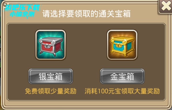 2、通关宝箱:每当玩家经过50点的时候,就可以领取通关宝箱,金宝箱每天只可以领取一次,银宝箱没有限制。