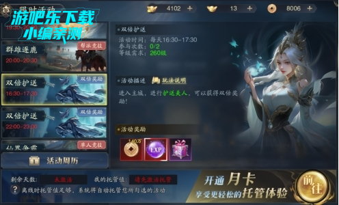 等级作为仙坠凡尘中最重要的一项数值,它关乎着各种玩法的解锁以及主线的推进,更高奖励副本的开启等等都需要达到一定的等级才能解锁开放。因此如何让前期刚入坑时经验最大化就显得格外重要。前期我们获取经验的途径主要为主线,经验副本,护送,悬赏任务,野外刷怪,天神试炼。而前期经验副本,以及护送,悬赏,试炼是重中之重。护送任务需要等到16;30-17;30期间有双倍再进行护送任务达到最大化,悬赏以及经验副本开启前先使用经验翻倍卷轴,增加获取的经验。这样就能很好的缓解前期卡级的问题。
