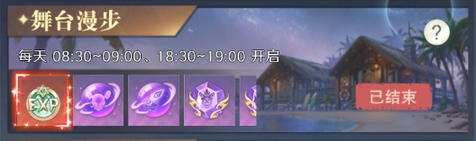 限时时活动舞台漫步:每天8:30-9:00,18:30-19:00。每天只能参加一场。(建议不要错过,获取经验等同于一次经验副本!)