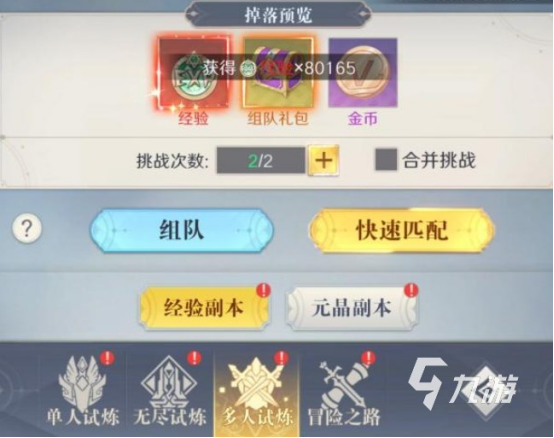那么现在大家知道云上大陆经验副本在哪了吧!首先需要玩家等级达到70级,然后才能开启这个副本入口,在“多人试炼”这一栏中我们就可以找到经验本了!如果你想尽快把等级提上去,那么每天2次的经验本必然不能少。