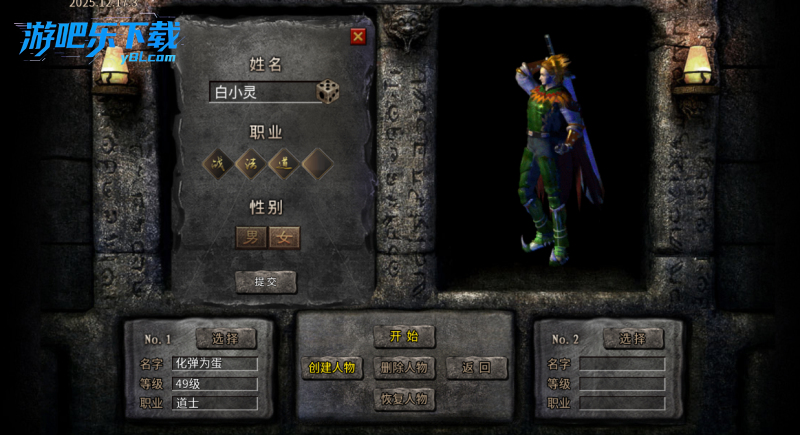 1、进入游戏,玩家需要先选择角色职业以及性别。