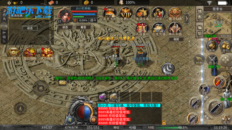 ★杀怪福利:每日击杀有福利,天天打怪领元宝、经验