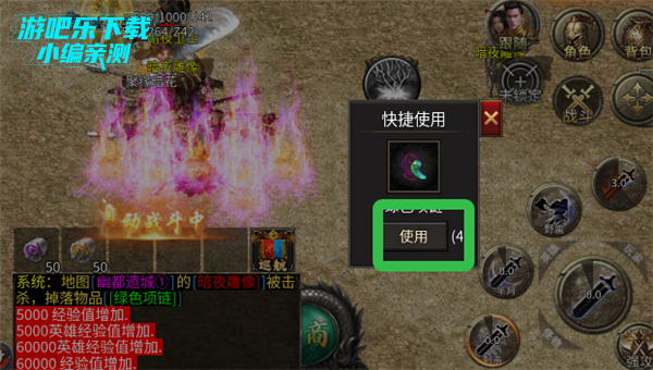 5、战斗后,可拾取掉落的装备,点击使用一键穿戴上。