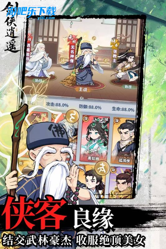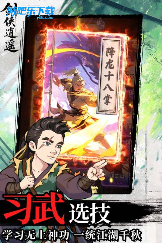 剑侠逍遥最新版下载安装手机版2026是一款Q版国风武侠放置卡牌手游,核心是自由武学搭配 + 策略挂机 + 侠客养成,主打 “轻松变强不爆肝、自创流派定江湖”,适配武侠爱好者与碎片化时间的休闲玩家。