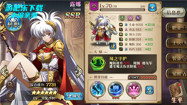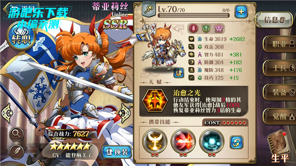 职业:先转圣女骑士;圣女骑士(克制魔物)、独角兽统帅(血量、智力、防御较高)。