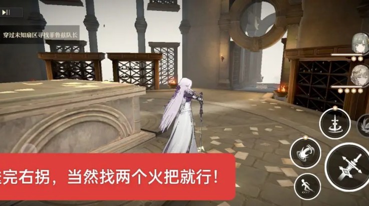 1、进入任务后,需要根据场景提示,从两个点亮的火把中选一路前行,不需要犹豫,跟着亮光走就能触发剧情。