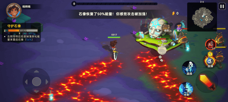 守护石像:沉睡的石像等待被唤醒,击败小怪后拾取掉落的异化能量可以用来重启石像能量,苏醒的石像将会帮助玩家共同抗敌!