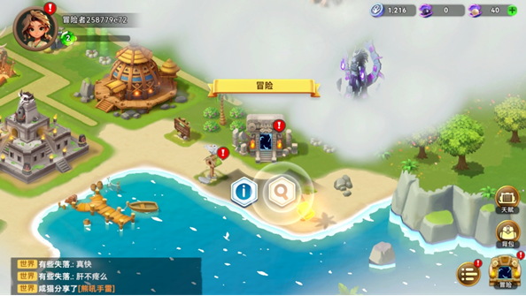 【冒险】玩法为主线关卡玩法,冒险开启后,勇士将会来到一片由随机怪物们占领的神秘区域。勇士需要一路神挡杀神佛挡杀佛,在险恶的旅途中挣脱怪物们的魔爪,直到战胜关卡最后的boss!