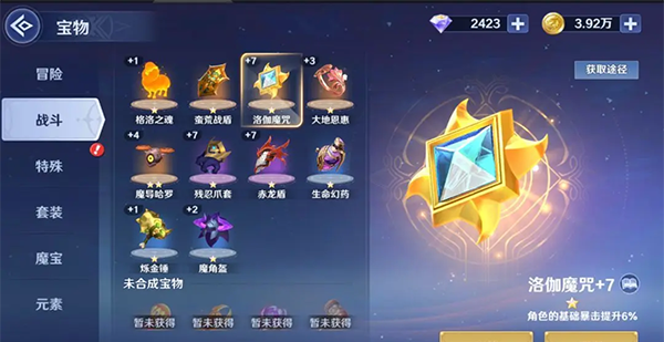 优化宝物系统界面中的宝物展示,将已激活且未觉醒的宝物前置显示,方便查找以及培养