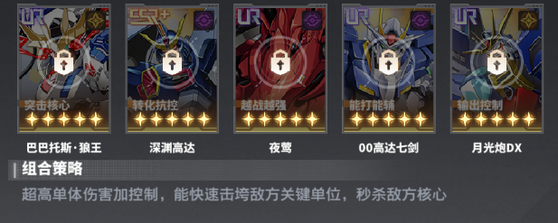 | ν 高达 | 后排主 C / 全队保护 | 浮游炮系统 + 精神感应立场,群体输出 + 全队减伤 | PVE 推图、爬塔、PVP 稳定输出 | 优先升能量攻击、暴击、技能伤害,绑定阿姆罗 | 限定卡池、版本活动 |
