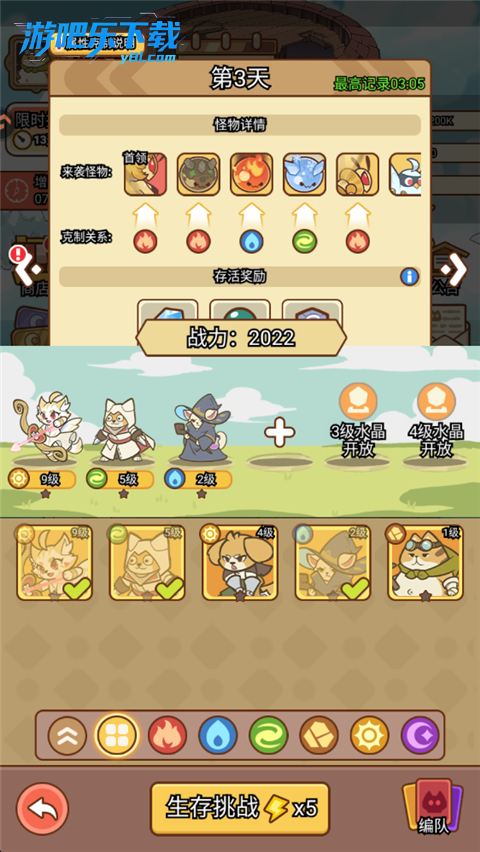 1、点击生存挑战,在这里你可以查看当前天数的敌人以及BOSS的相应克制关系。