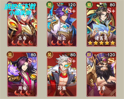 3、吕布+赵云+诸葛亮+周瑜+孙策+董卓