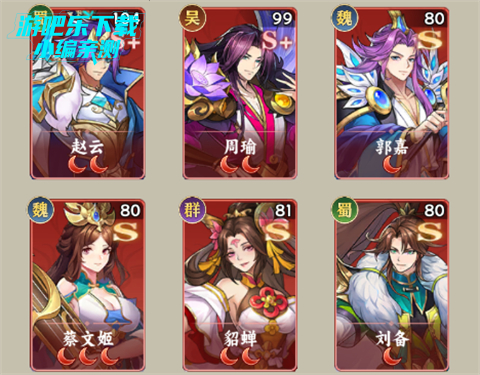 5、赵云+周瑜+郭嘉+蔡文姬+貂蝉+刘备