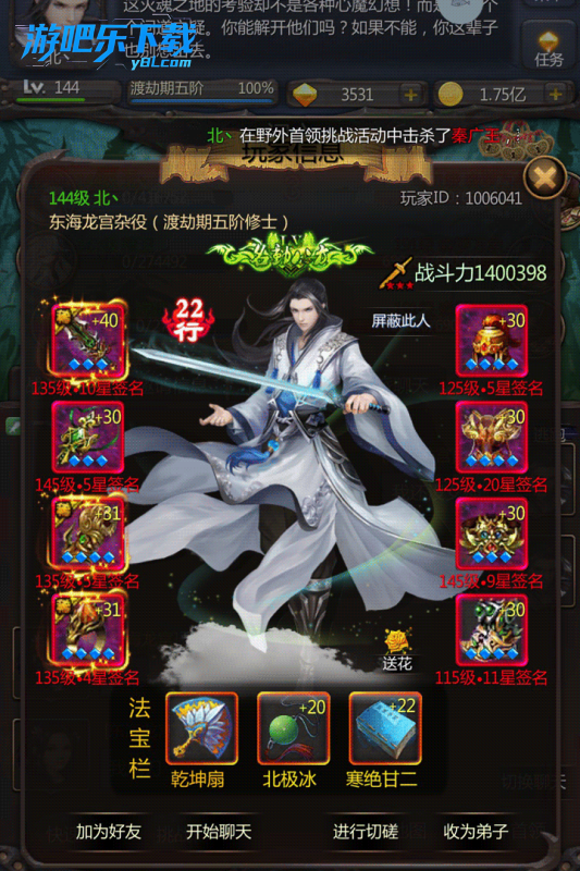 然后开始进群拿下新手礼包,近期的激活码礼包,可以进群问管理拿,然后先去八卦坊抽四灵幡,抽完钻石不出就清号再抽,这个法宝是目前能抽到的最好的法宝,有它开局,以后发展会好很多。