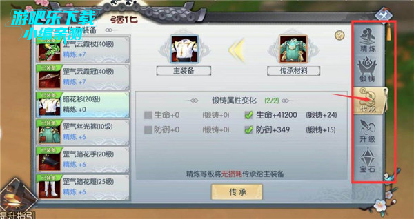 6、我对传承的归纳总结就是一句话: 传承只限定本职业同部位之间,低品质传高品质会掉精炼(一般都是掉1~2),传承材料不会消失。不要的装备可以拆解掉:精良装备 + 装备拆解符 = 铸造碎片。