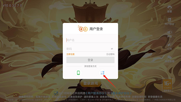 1、在本站下载金鲨银鲨飞禽走兽手机版,打开游戏后点击一键注册;