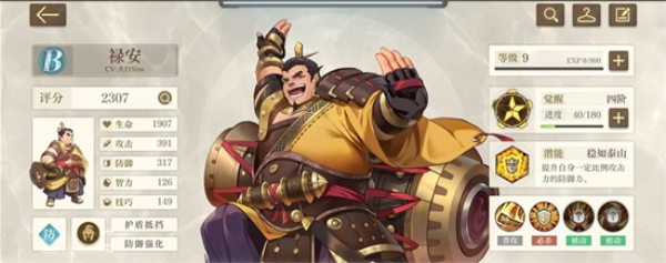 防御系TOP3 初始大将军禄安