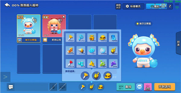 超人们在房间里可以自由选择队伍、选择地图、选择道具,最后存活的超人胜利。