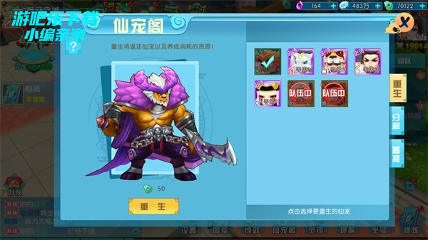 如果你想替换花费了很多资源仙宠,但又不想把这些资源浪费,这时候就需要用到重生啦。重生后就可以把这些资源培养另外喜爱的仙宠啦~