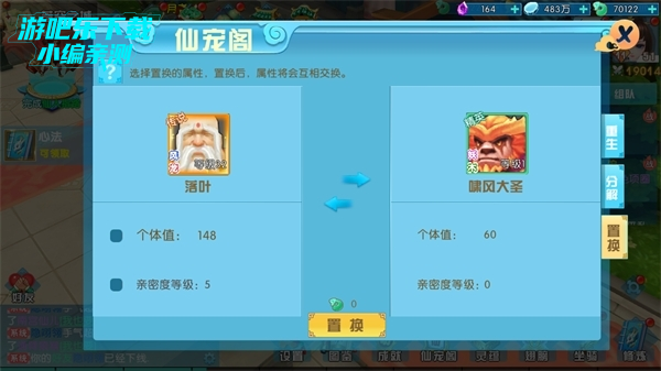 3. 个体值置换是按照当前仙宠个体值的占比进行置换。突破值将百分百置换。