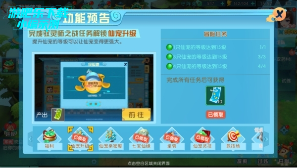 解锁条件:完成驭灵师之战任务解锁仙宠升级玩法。