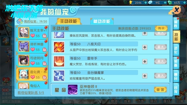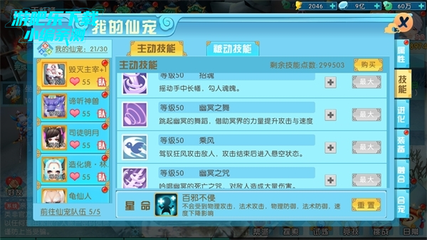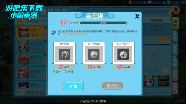 玩家点击升级,即可进入仙宠升级,升级需要消耗一定的,需要注意的是,仙宠等级不能超过人物等级哦!