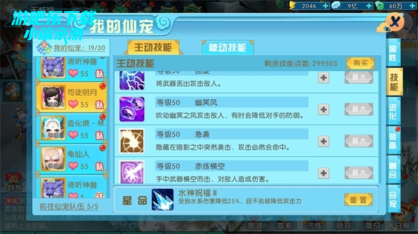 仙宠系统可容纳30只仙宠,但上阵的仙宠只能5只,要是觉得上阵仙宠太少了,如果你是颜值控,你可以挑选五只最好看的上场。当然,你要是追求实力,那你就得好好琢磨,怎么搭配仙宠才是完美阵容。
