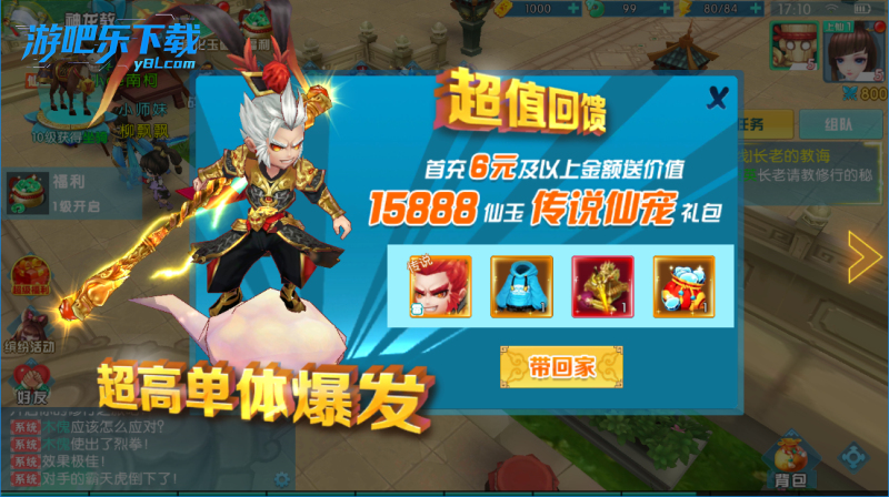 ★福利5:首充6元送传说仙宠:齐天大圣·孙悟空*1、神圣武器*1、大灵石袋子*1、时装萌宠大作战*1