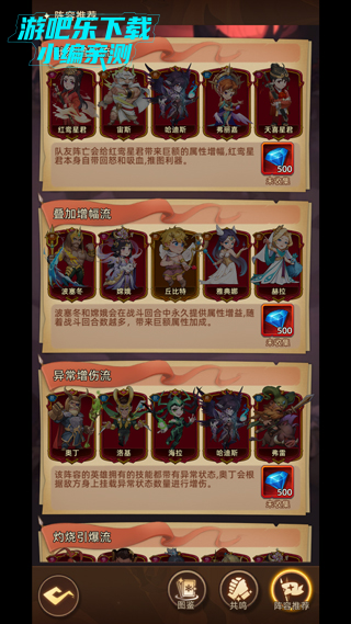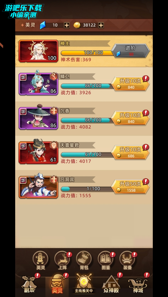 3、英灵需要不断升级。它们的品质从低到高依次为紫色、橙色、红色。帮助玩家推进关卡。